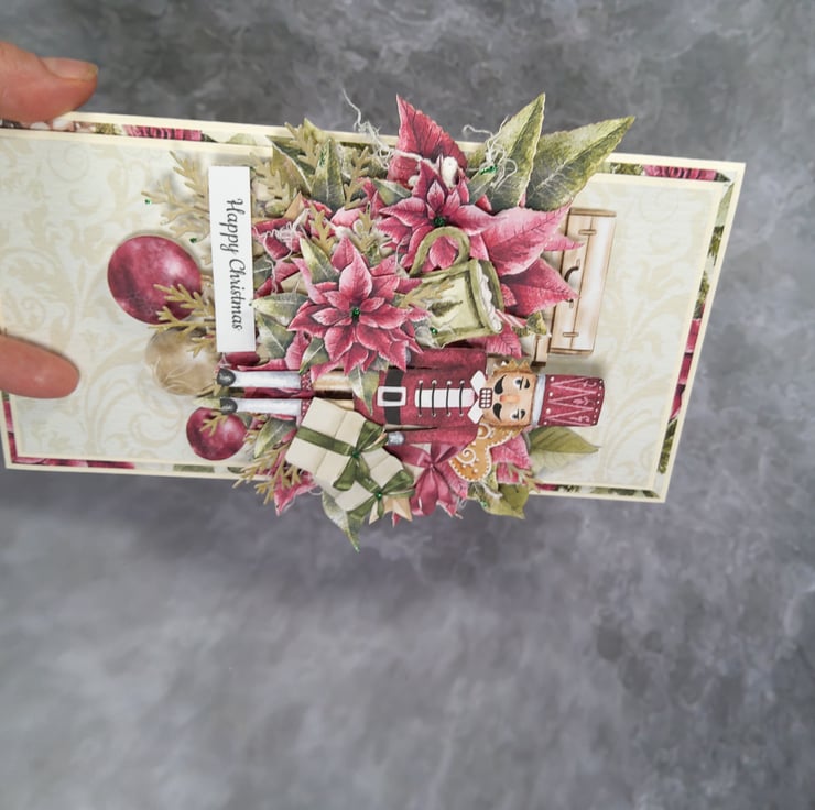 Handmade 3D Christmas Card with Nutcracker and Poinsettias