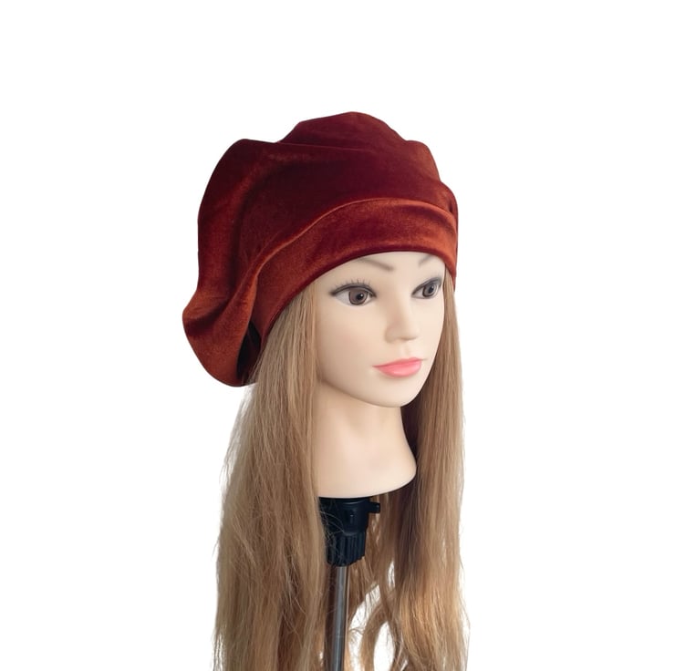 Made from luxuriously soft stretch velvet, this beret drapes beautifully and adds an elegant yet casual flair to any outfit. Whether you're looking for a fashion-forward accessory, a modest head covering, or a lightweight hat for hair loss, this versatile beret is a must-have.