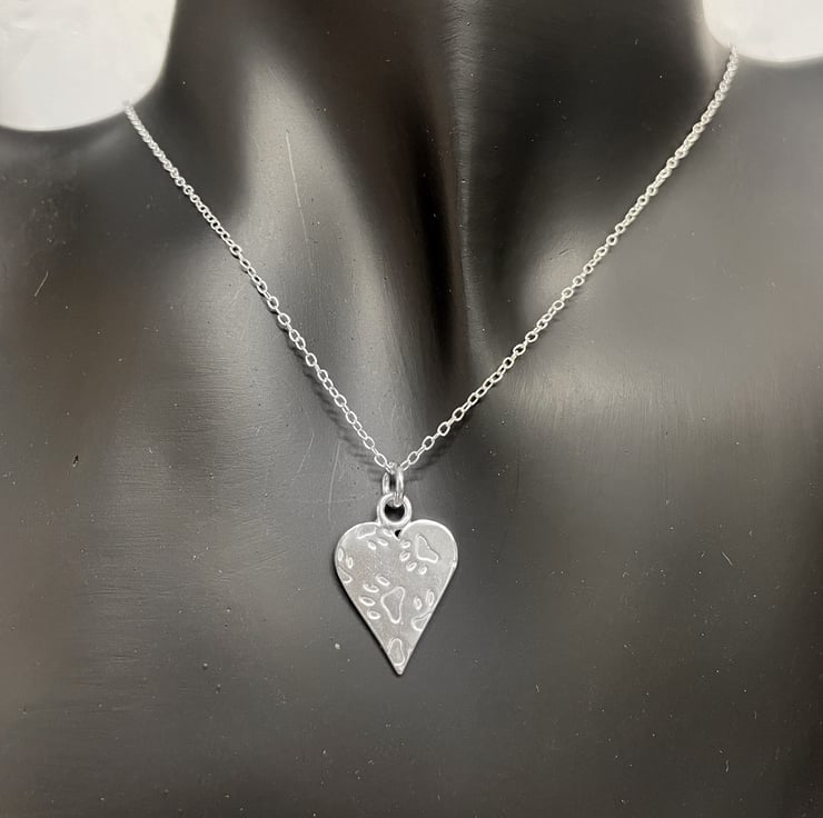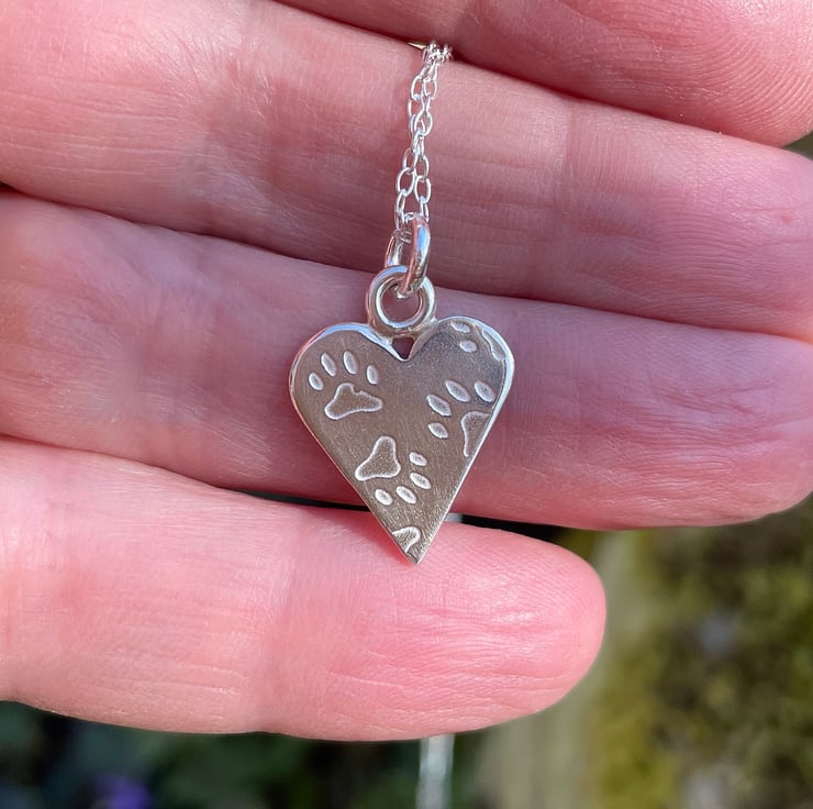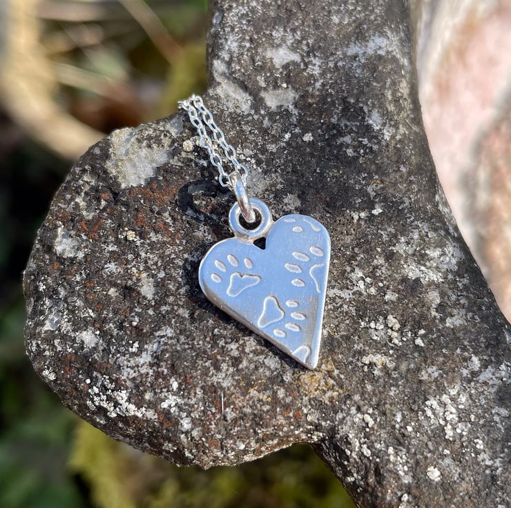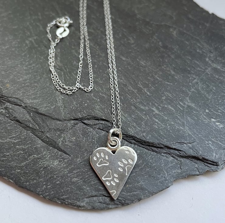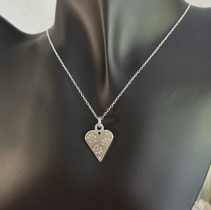 Sterling silver paw print heart pendant and chain