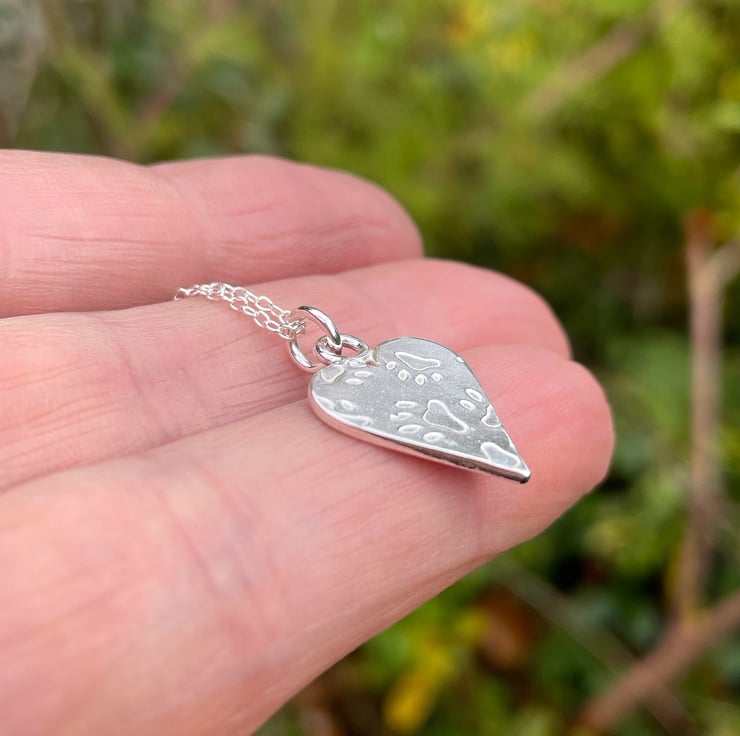 I have embossed some thick silver with paw prints then cut a heart .