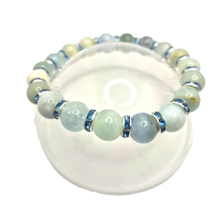 Amazonite bead stretchy bracelet with blue faux crystal rondelles