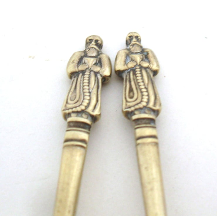 The spoons have matching bearded book-carrying robed 'apostle' figures on the terminals and are approx. 11cm long. Please note they are vintage and very worn and show many signs of age and wear. Have a good look at the photos if you think this is likely to bother you or the intended recipient. I wasn't happy with how the stamping turned out either and so these two are now in the Bargain Bin for a very Bargain Price. Also I always combine postage so if you wanted to pick up some more Bargain Spoons at the same time they'd then be even more of a Bargain! Just saying...