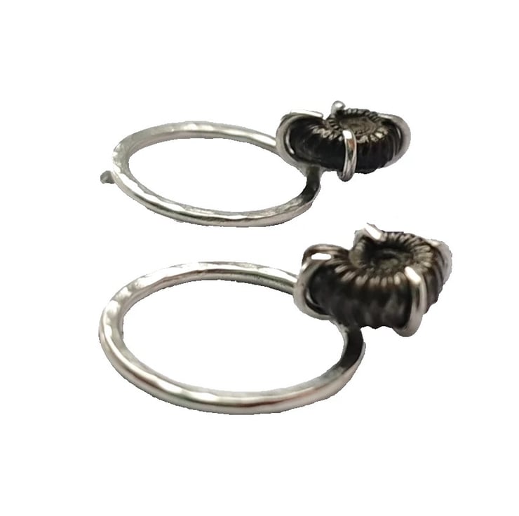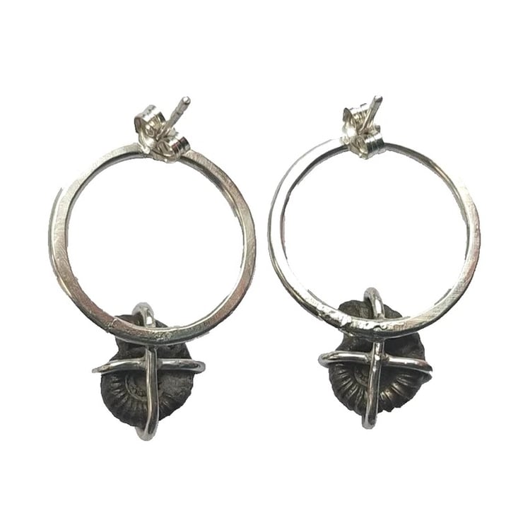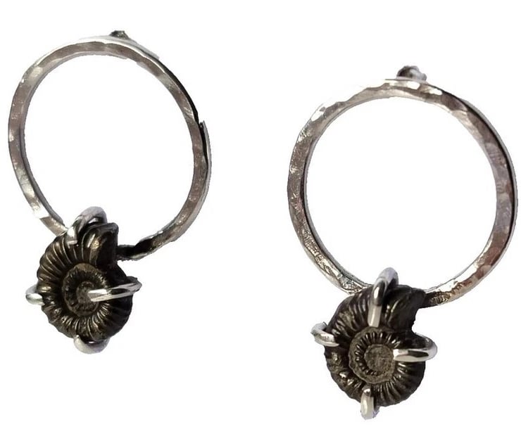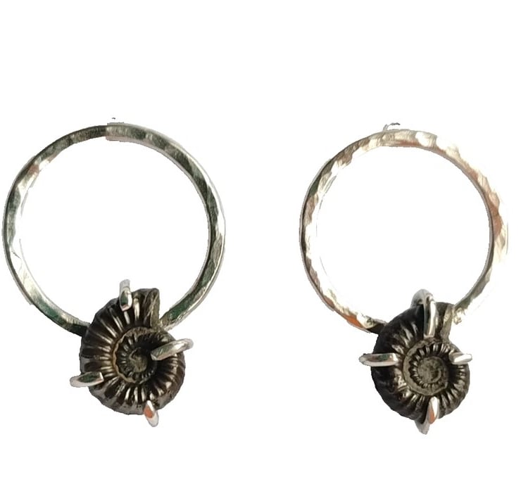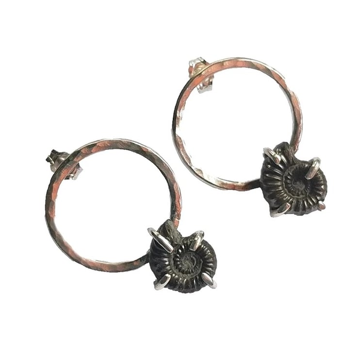 Recycled Sterling Silver Handcrafted Earrings with Genuine Pyritised Ammonite Fossils
