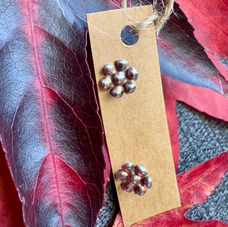 They are made from recycled silver and measure approximately 8mm across.