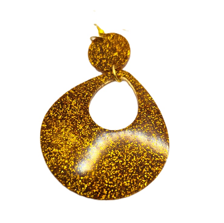 Large retro style earrings made with a golden brown coloured resin which has had glitter added to give that extra sparkle
