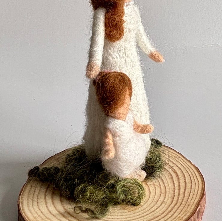 A beautiful ornament displaying the love between a woman and child made from wool.