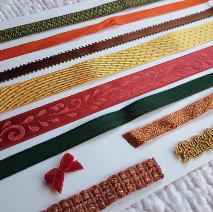 In stunning maple leaf and pumpkin spice colours, my textile craft kit is ideal for sewing Autumn textile projects or just cosy slow stitching in front of the fire. A rich collection of fabrics and trims that include vintage, preloved and reclaimed textiles in oranges, reds, plums and pinks, offset with cream and green.