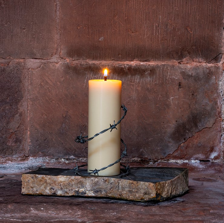 This was on display at Carlisle cathedral along with an explanation of the symbolism. This type of design / image has been and remains recognisable with Amnesty International.