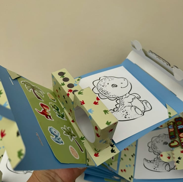 These Dinosaur inspired colouring cases are the perfect party favour for your guests on your
