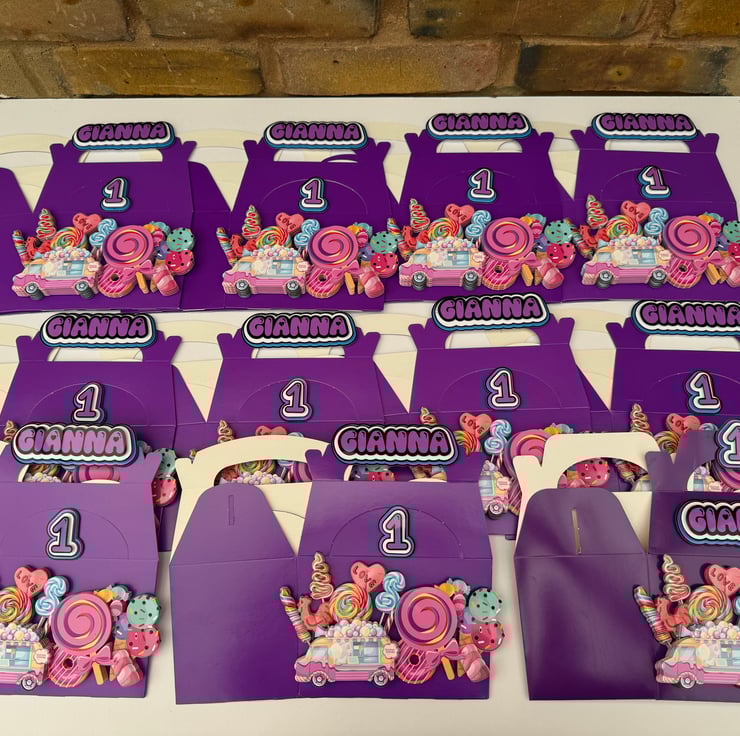 These personalised party boxes are the perfect favour for your guests on your next event.