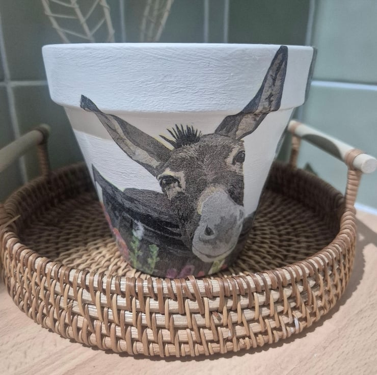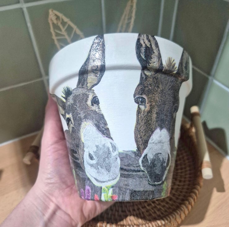 I absolutely creating decoupaged plant pots and changing up my seasonal decor. I love these cute donkey pots. So much so I made a Christmas donkey pot too!