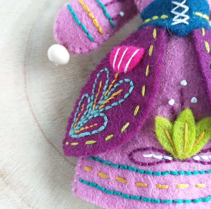 Made with 100% wool felt and embellished with hand embroidery.