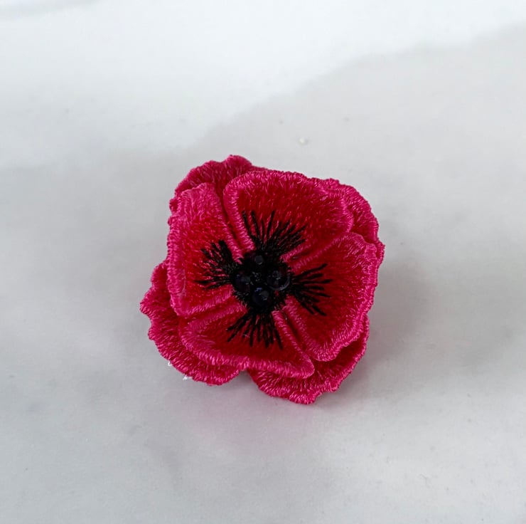 Gorgeous lightweight machine embroidered lace Poppy Brooches in a choice of colours.