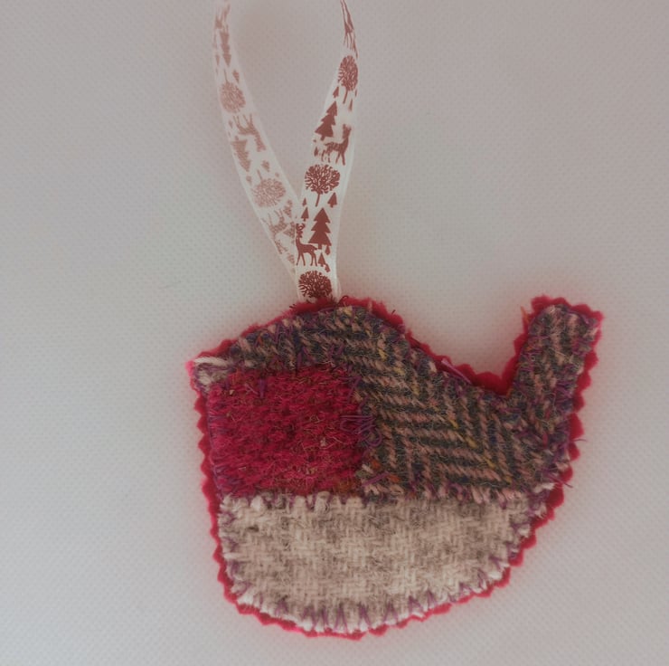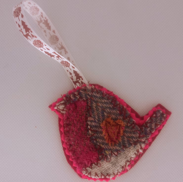 Harris Tweed Robin decoration.. Approximately 2.5x2.5 inches.