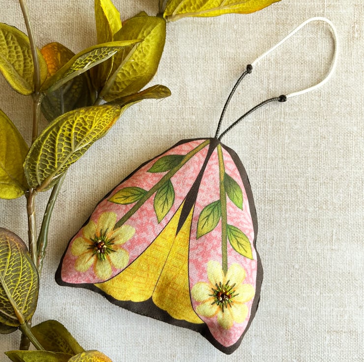A pretty handmade lavender bag in the shape of a moth. Not a critter you would normally want to find in your wardrobe, but this lavender filled one will help keep those pesky clothes moths away.