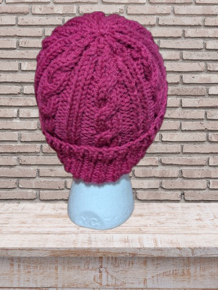 DESIGN FEATURES: Raspberry pink chunky cable knit beanie for stylish winter warmth