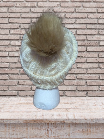 DESIGN FEATURES: Cream chunky cable knit beanie with a faux fur beige pom pom for stylish winter warmth