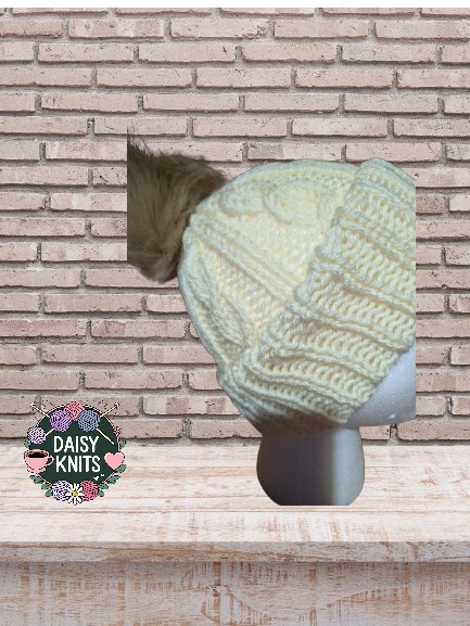 Hand Knitted Hat, Ladies Cable Hat, Pom Pom Hat