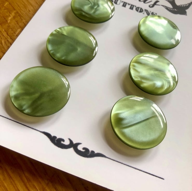 6 Vintage Green Marbled Buttons - 28mm lovely vintage marbled green buttons, would look great on a chunky knit or even a coat.