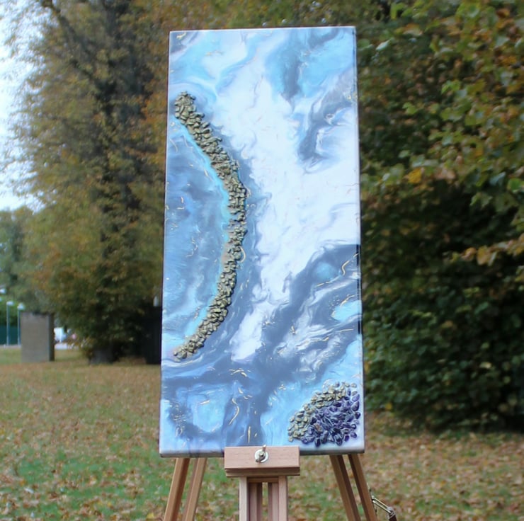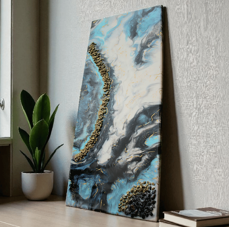 This artwork is intended for indoor decorative use only. Keep away from direct sunlight, heat sources, and high humidity to preserve the resin’s glossy finish and prevent warping of the MDF base. Resin surfaces can be wiped gently with a soft, dry cloth — avoid abrasive cleaners or solvents. This piece is not a toy and should be kept out of reach of children and pets.