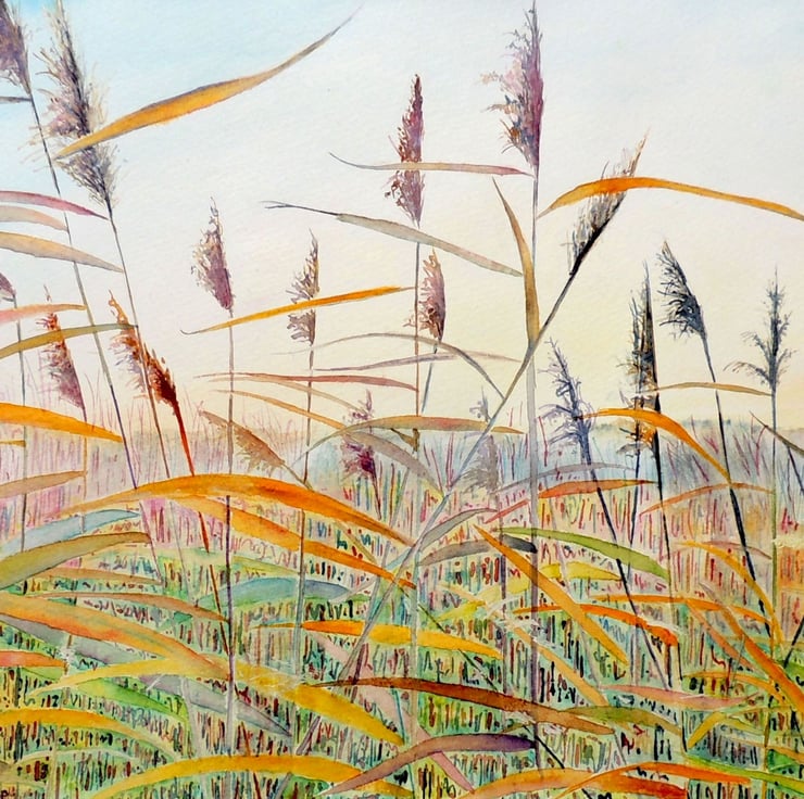 The tall reed stems that line the ditches and dikes in the fens mirror time and the elements in the way they change colour, bend in the wind, and transpose light through their silver-brown feathery flower heads.
