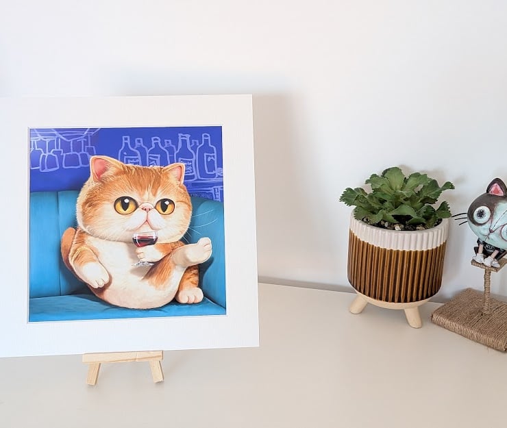 Indulge in a moment of sophisticated whimsy with The Sommelier Cat art print!