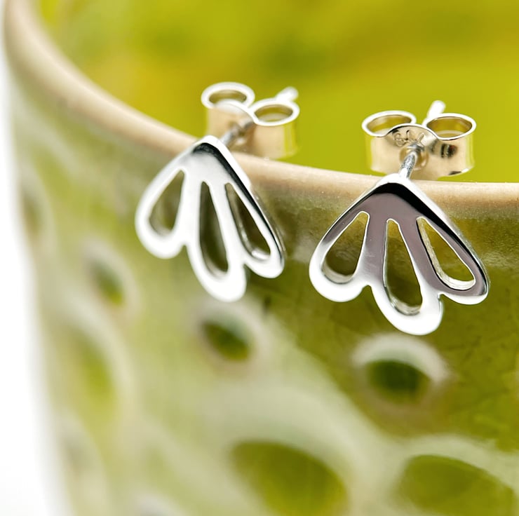 These sweet medium sized floral sterling silver studs earrings are inspired by the blooming flowers in spring. They are polished to a shiny finish with sterling silver posts & scrolls. Perfect for everyday wear.