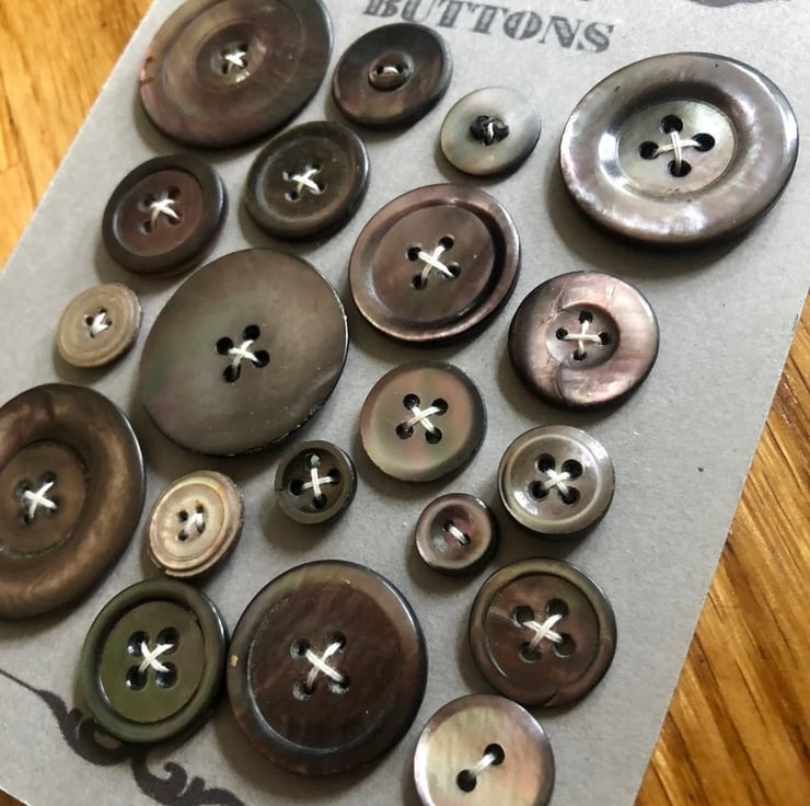 20 Vintage Mother of Pearl Grey Buttons, lovely mixed lot of gorgeous Mother of Pearl Vintage buttons, possibly Abalone, sizes range from 3.3 cm Dia - 0.6cm Dia