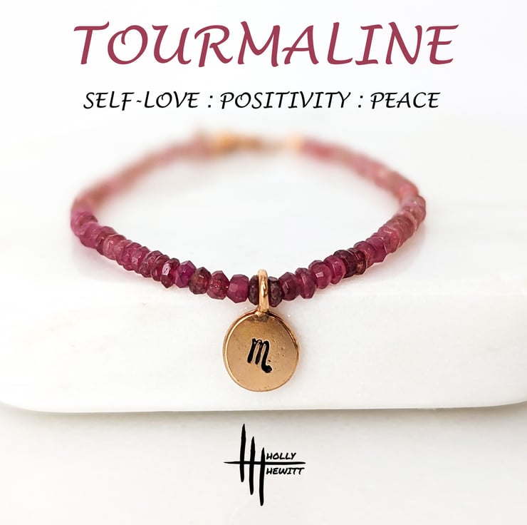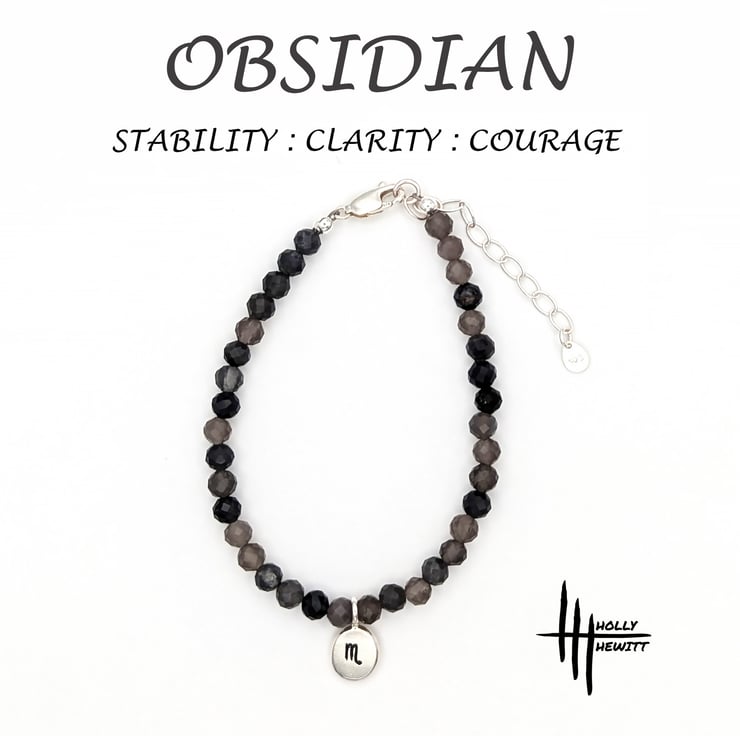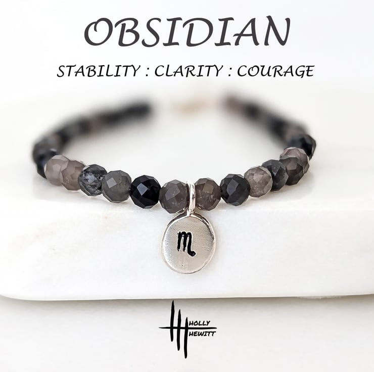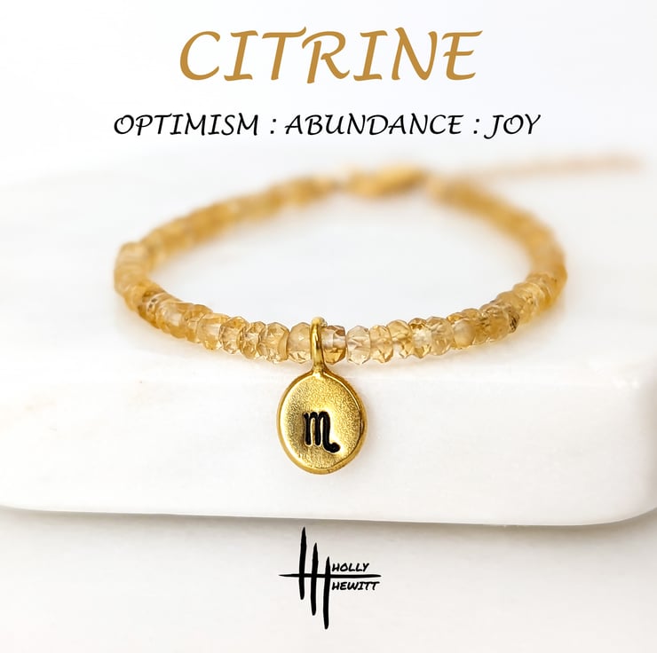 Handmade Scorpio zodiac charm bracelet. With Tourmaline, Citrine, Obsidian faceted gemstone beads. The quality stones are completely natural and uniquely complement Scorpio's personality traits.