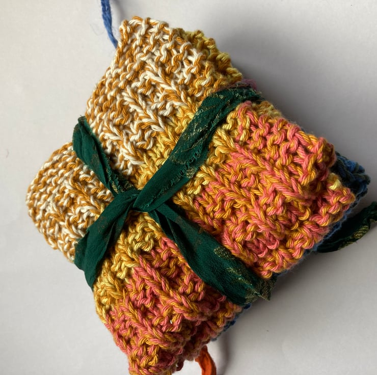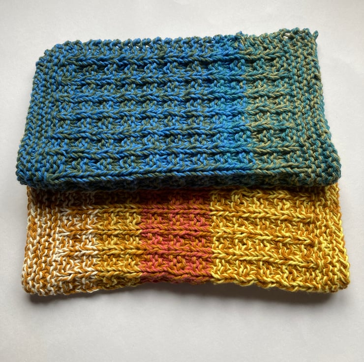Both of these dishcloths have been hand knitted in 100% cotton.