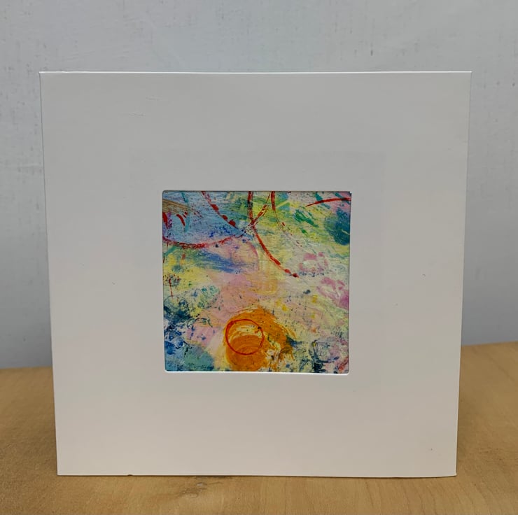 This 6cm square original acrylic painting is mounted into a blank greetings card with envelope providing a small burst of joy.