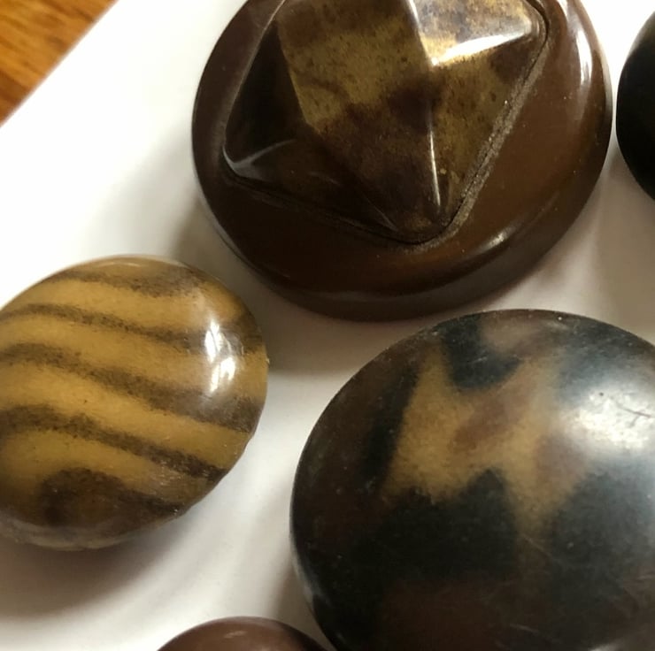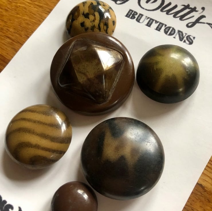 6 Vintage Brown Metal Dome Buttons, these as really cool, mostly made of metal and plastic, sizes range from 4.5 mm to 15mm.