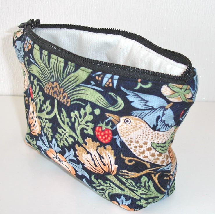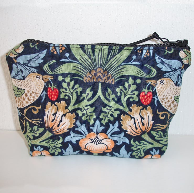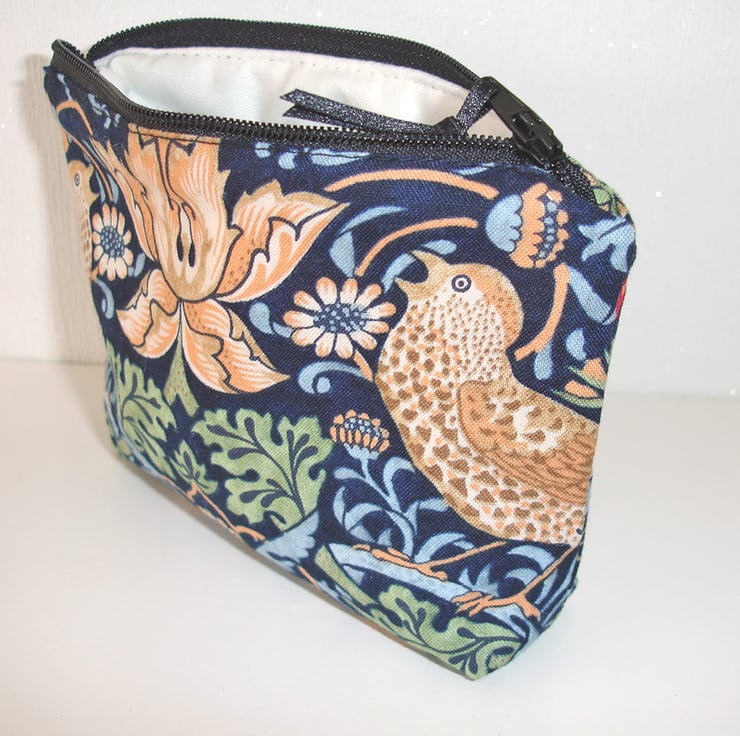 Small Zipped Pouch Purse Bag Strawberry Thief William Morris Bird Blue