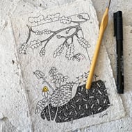 All my artworks are original on handmade paper made by myself from recycling old bills, letters etc