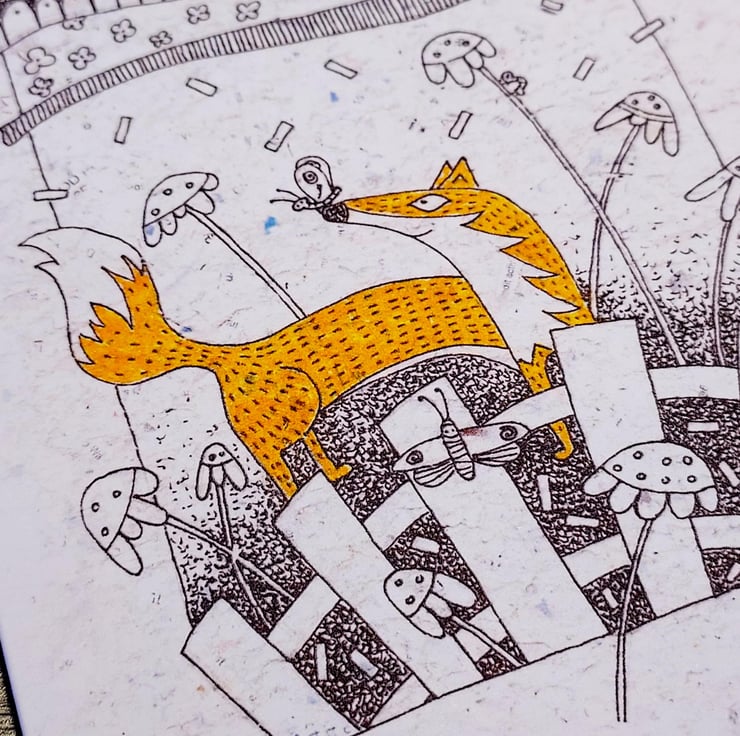 All my artworks are original on handmade paper made by myself from recycling old bills, letters etc