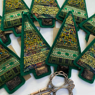This seasonal embroidered woodland home decoration shows an endearing red squirrel sat in leaves. It has been made from prefelt, locks, grape vine wreath and stitched down with free motion embroidery. It comes felt backed and measure approx 11 x 11cm, the jute string length varies.