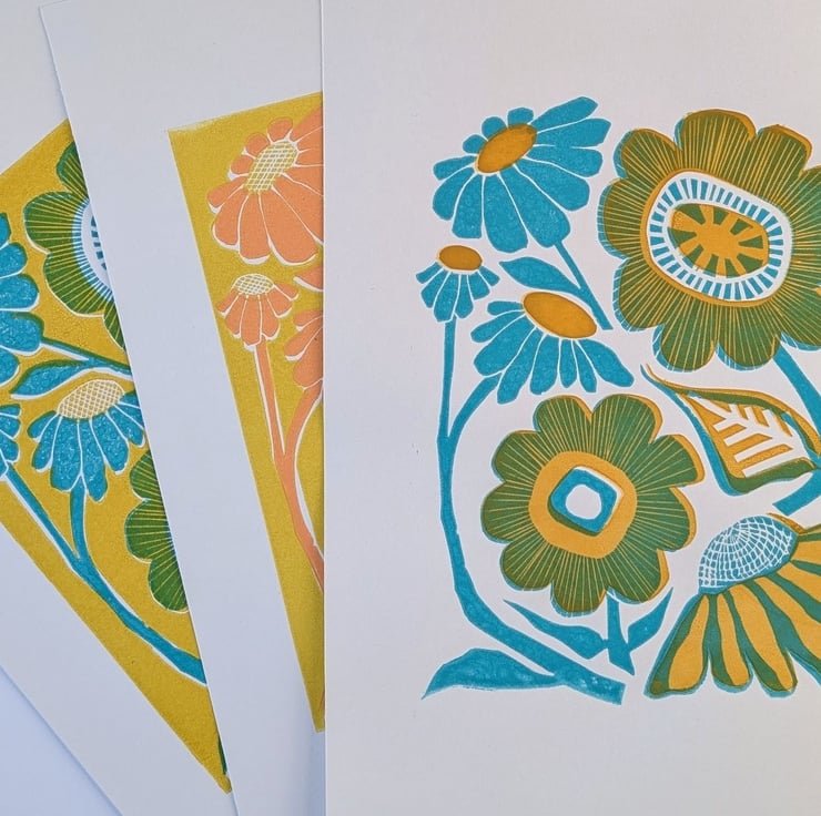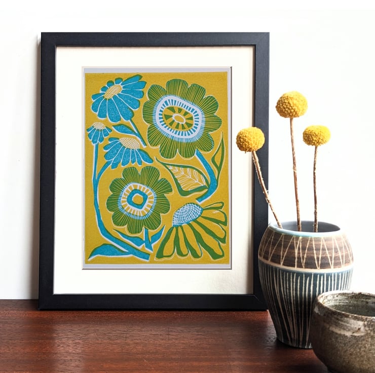 Handmade original Linocut printed onto off-white 190gsm acid-free paper using gorgeous vibrant Cranfield inks.