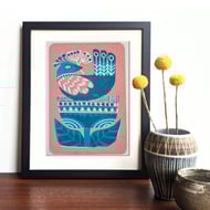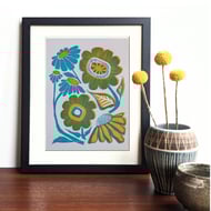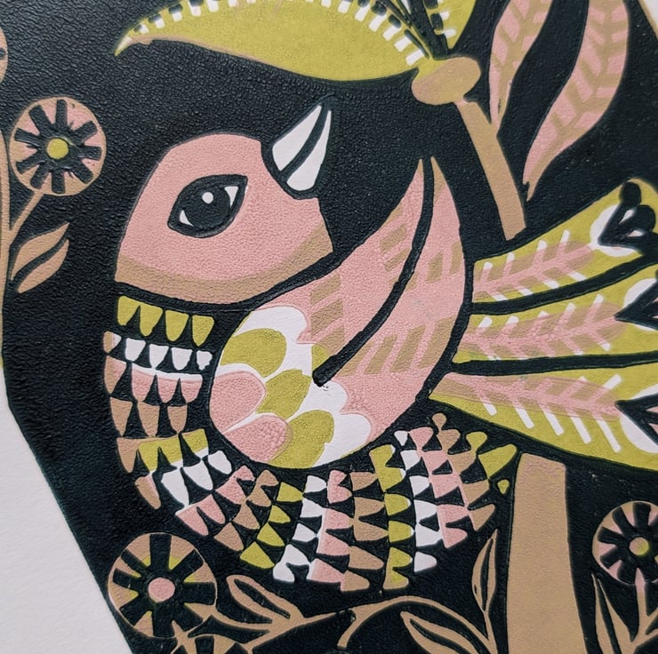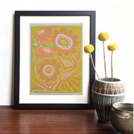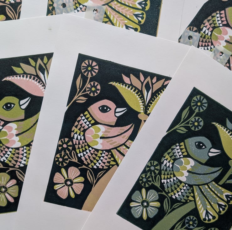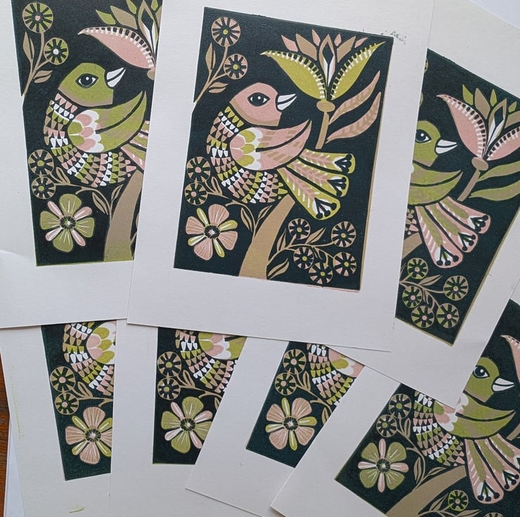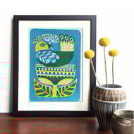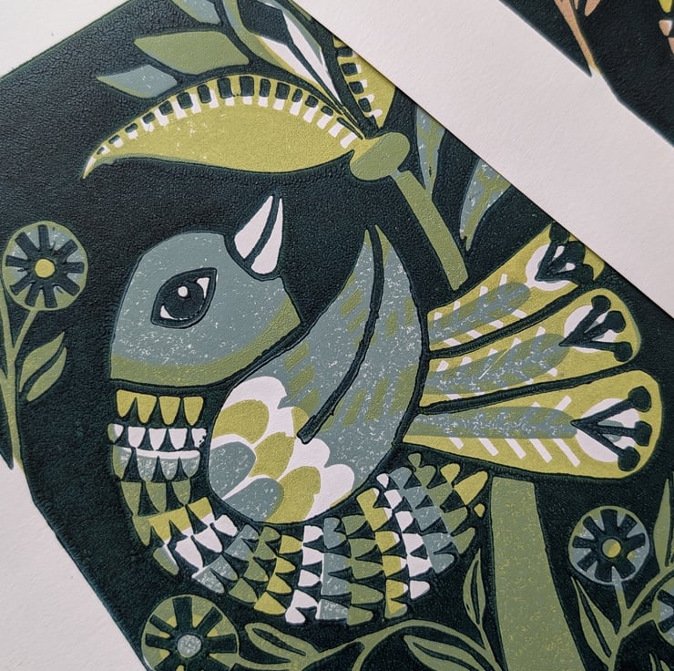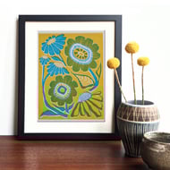 Handmade original Linocut printed onto off-white 190gsm acid-free paper using gorgeous vibrant Cranfield inks.