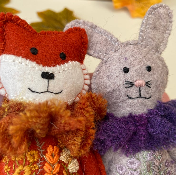 Woodland fox and rabbit, felt animal wall decorations, boxed animal dolls