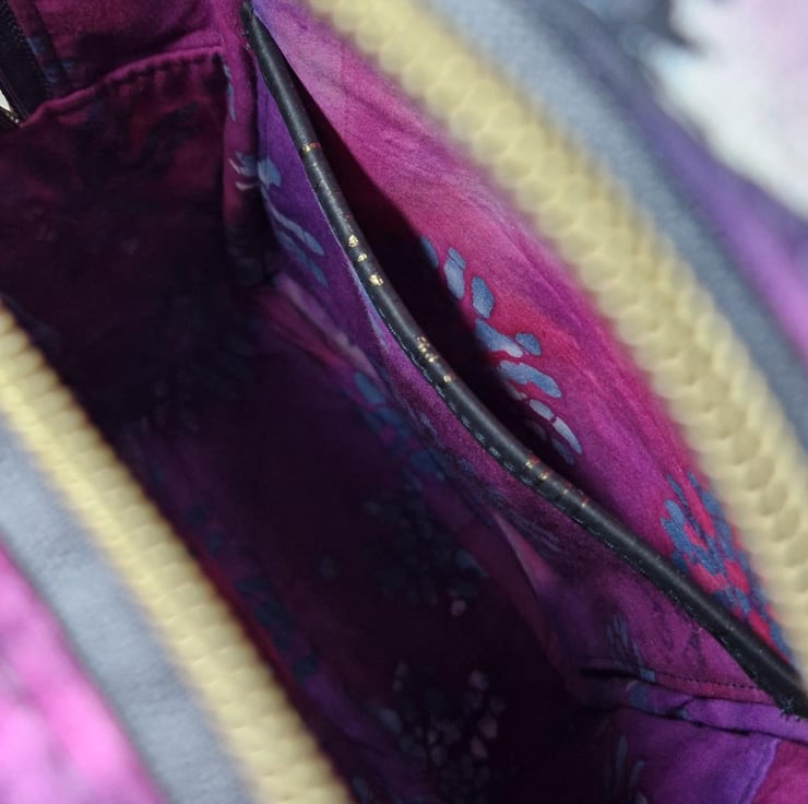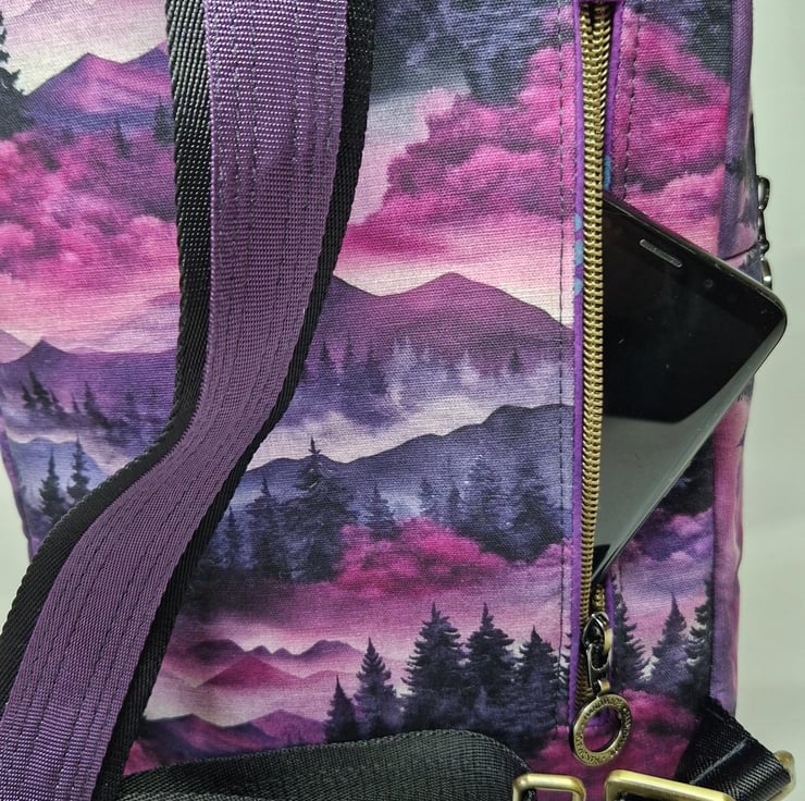 The Daythum Sling Bag is a fun and practical sling backpack and is made in Water Resistant Canvas and black and gold cork fabric with a coordinated cotton lining. With a large front pocket, hidden zipped back pocket and an inner slip pocket, it will hold all your every day essentials. The adjustable webbing strap has been designed to clip to either the left or right of the bag. An ideal bag for travel, work or walks keeping your hands free and wearable at the front or back and across either shoulder.