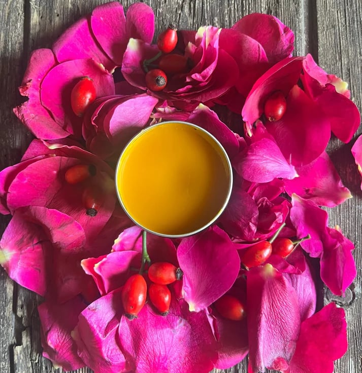 Key ingredients: Beeswax, Mango & Shea Butter, Jojoba Oil, Seabuckthorn Oil, Argan Oil, Apricot Kernel Oil and of course Rosehip Seed Oil. Along with Rose Essential oil and Frankincense Essential Oil
