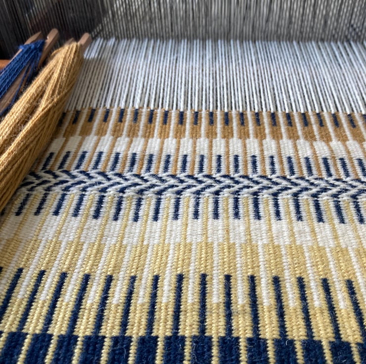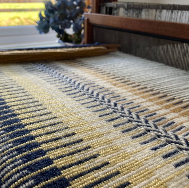 Our wool cloth has been woven in a typical Scandanavian ‘Krokbragd’ design. This is our own design and one of our versions of this wonderful historic versatile weave.
