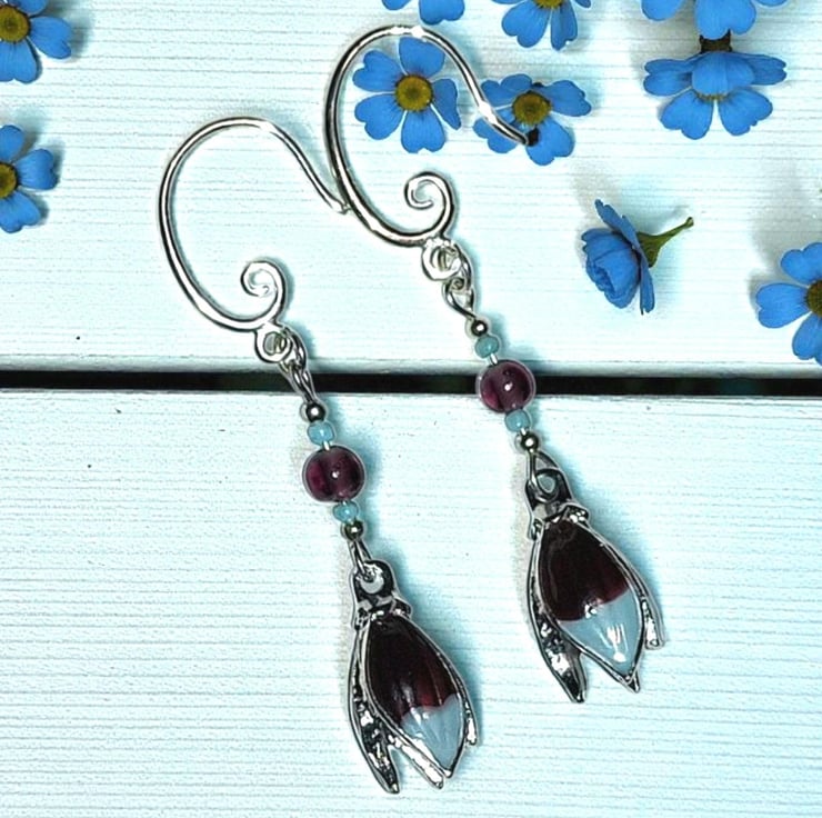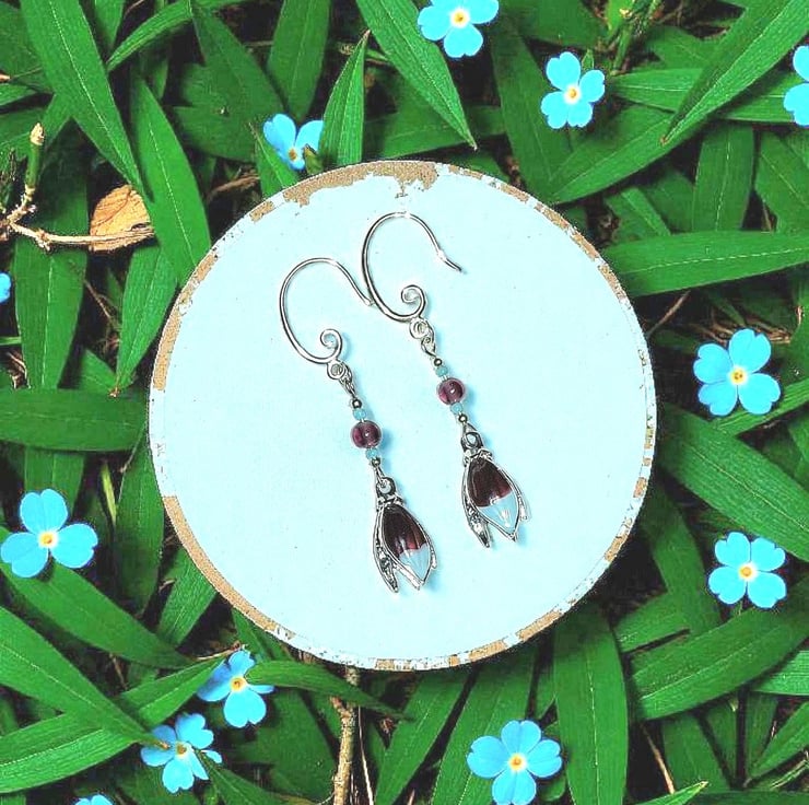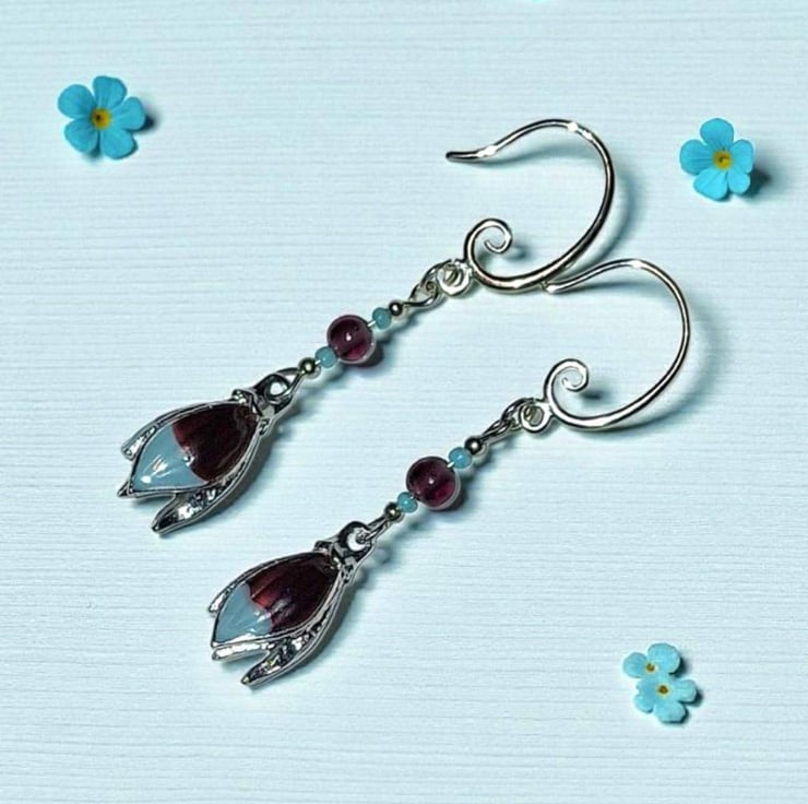 Lampwork flower earrings, unique earrings, special jewellery, enamel earrings, f