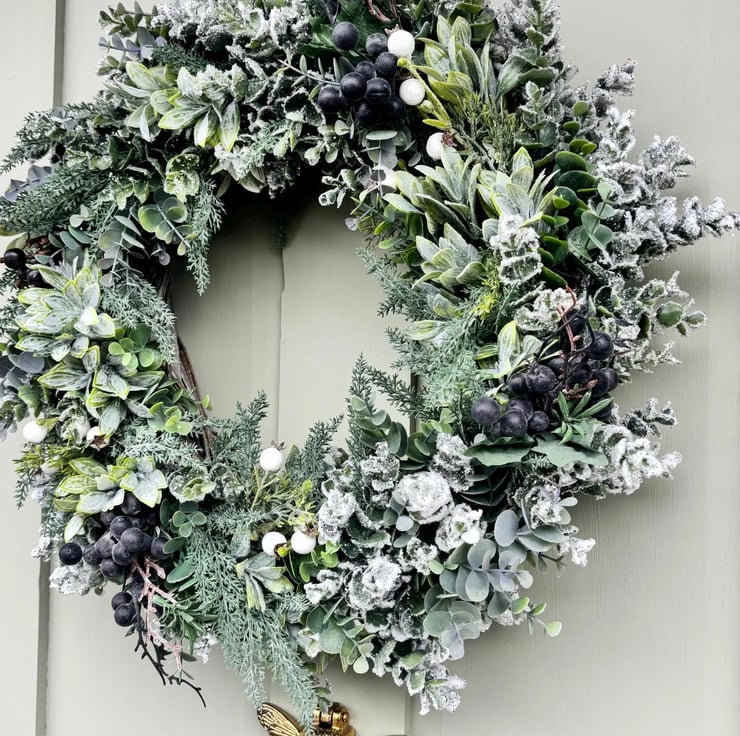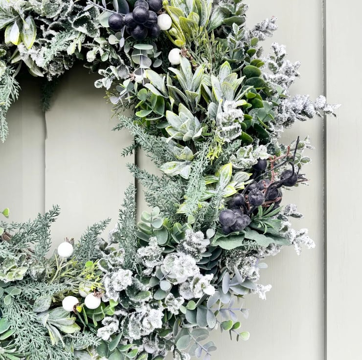 I'm obsessed with that magical, frosty morning look, when everything's dusted with snow and the world feels crisp and sparkling. This wreath captures that beautiful wintery scene with soft silvers, icy whites, and frosted berries that catch the light. I wanted to create something that feels like a winter wonderland right on your door, elegant and dreamy with all those gorgeous frosty textures. It's perfect for anyone who loves that serene, snowy aesthetic that makes the season feel truly magical