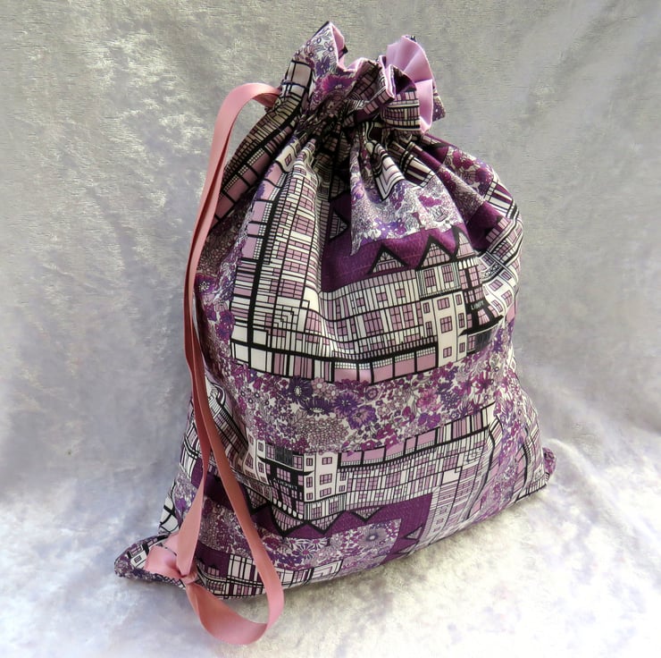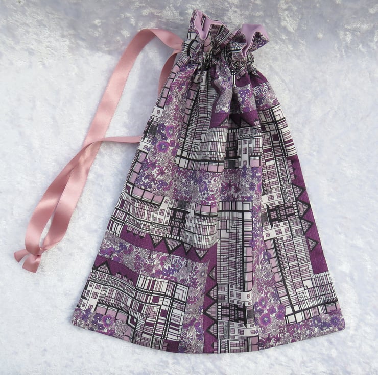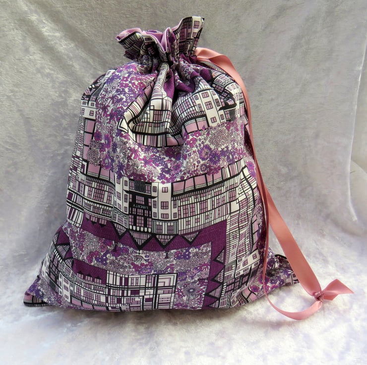 A lined drawstring bag, made from Liberty Tana Lawn.