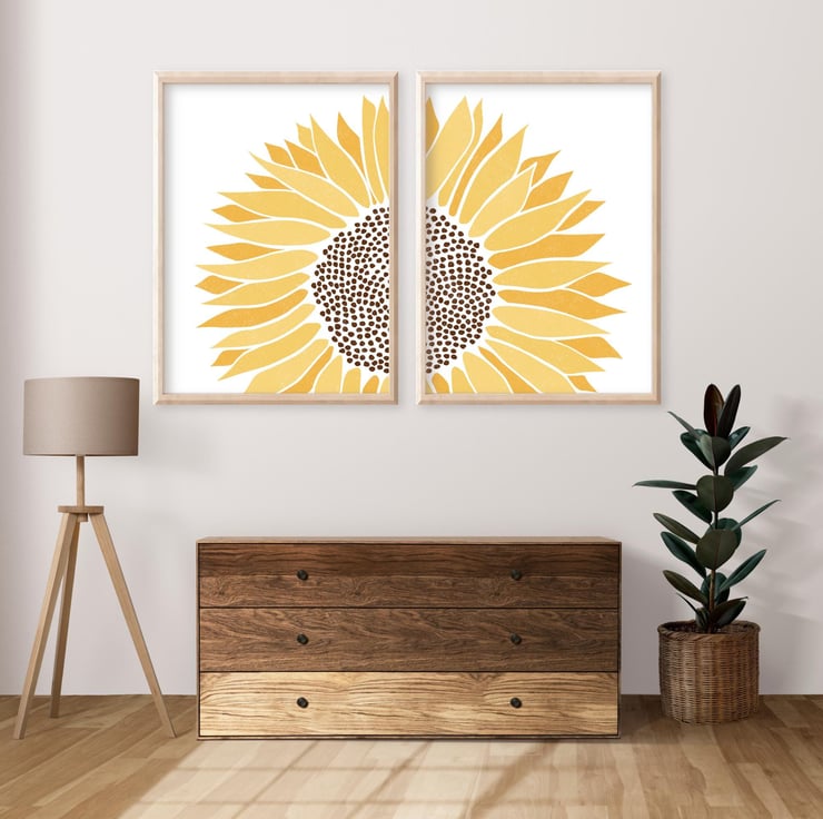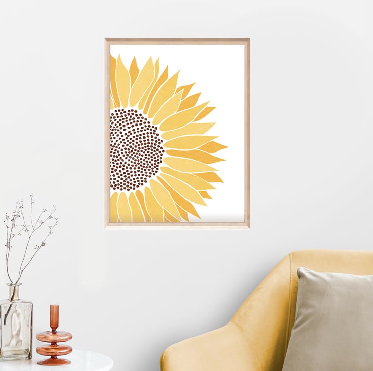 Sunflower Wall Art Print, Golden Yellow Floral Home Decor