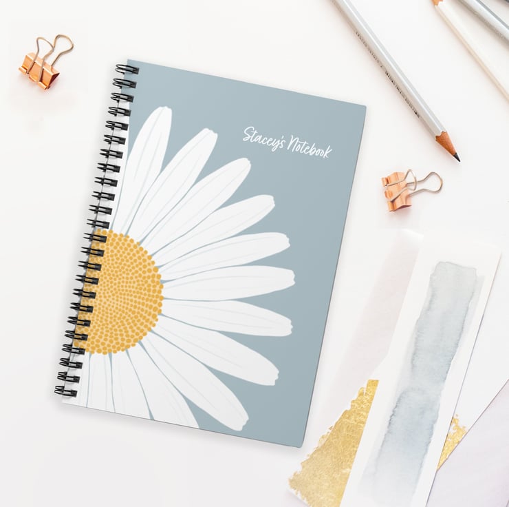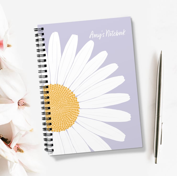 Each notebook is professionally printed with my original daisy design and personalised just for you – a little touch of joy to brighten your everyday writing.