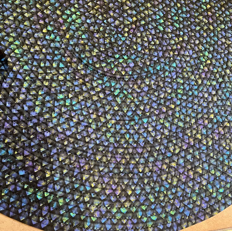 This oval jelly roll rug is made with the gorgeous blue Dragon Scale patterned fabric. It measures 48"x30.5".