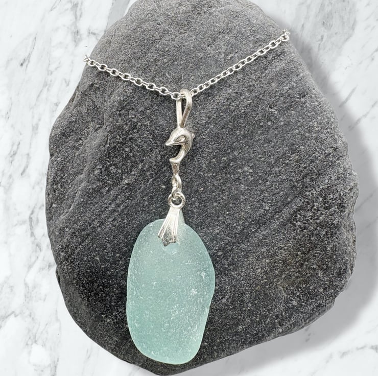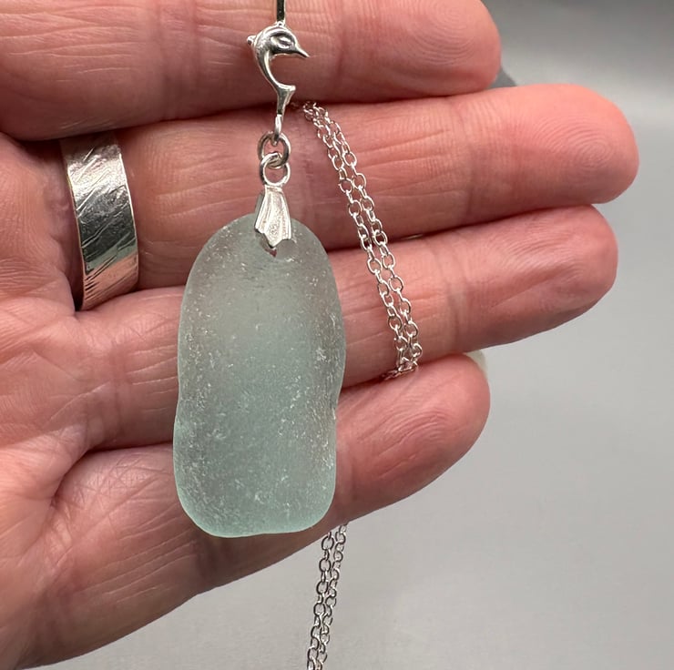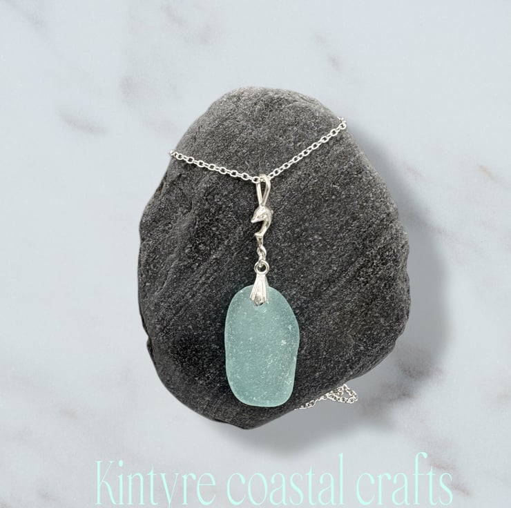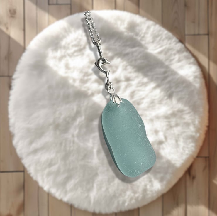 This beautiful aquamarine piece of sea glass was just perfect for the lovely dolphin bail. Together the are an ocean lovers dream necklace.