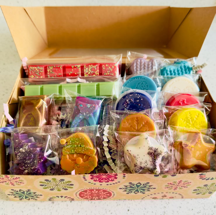 Filled with 16 stunning handmade wax melts in a variety of festive shapes, colours and scents – it’s the perfect gift for someone special or a cosy treat just for you!